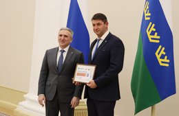 Губернатор Александр Моор вручил главному врачу Тюменской станции скорой медицинской помощи Владимиру Романову сертификат соответствия уровню «Региональный образец бережливого управления».